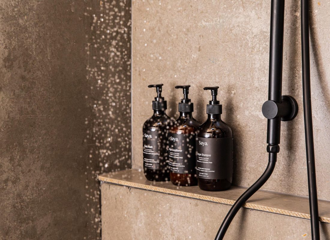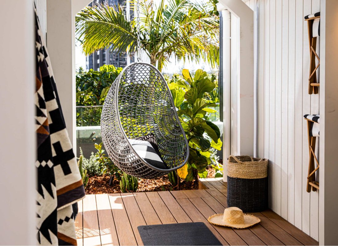 qtQT Cabins are packed with luxe amenities from around the neighbourhood; Bedding from I Love Linen in Burleigh, Saya Skincare amenities from Noosa, Japanese Honeysuckle Reed Diffusers and Harvest Clay ceramics crafted in the Gold Coast.